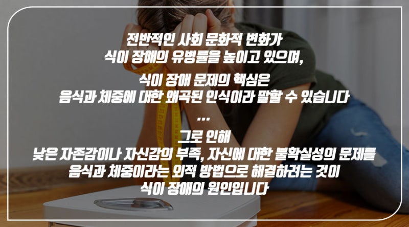 섭식 장애는 섭식 행동, 체중 및 체형에 문제가 발생하는 상태입니다. 배고픔, 폭식, 구토, 체중 감량을 위한 과도한 운동 등의 증상을 말합니다. 이러한 행동과 증상은 음식 섭취와 소화기관에 영향을 미치고 궁극적으로 신체 건강과 심리사회적 기능에 심각한 손상을 초래합니다. 이를 개선하기 위해서는 신체적, 심리적, 사회적 지향성을 포함하는 다각적인 접근이 필요하다. 섭식장애 증상으로 몸이 불편하시다면 강서에 위치한 저희 섭식장애치료열린정신건강클리닉으로 오셔서 상담과 치료를 받아보시길 바랍니다!