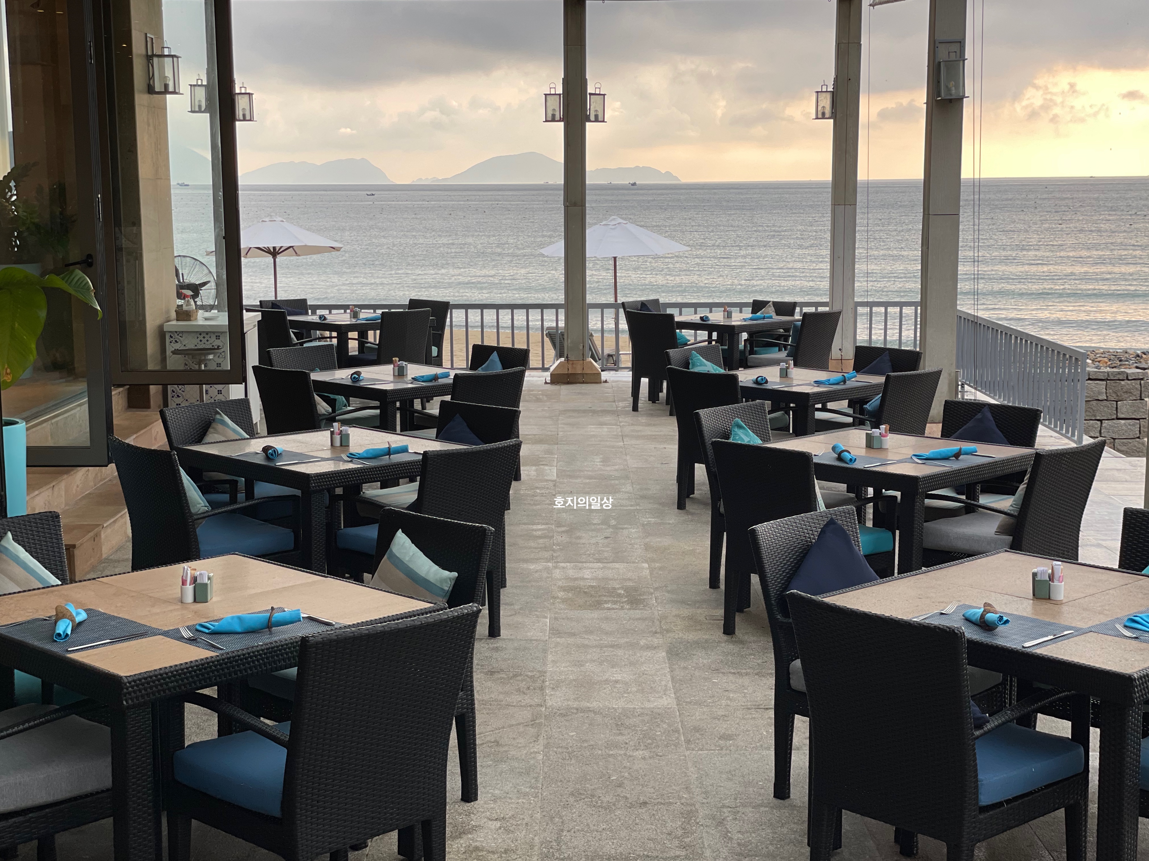 조식당 바로 앞, 미아리조트 프라이빗 비치