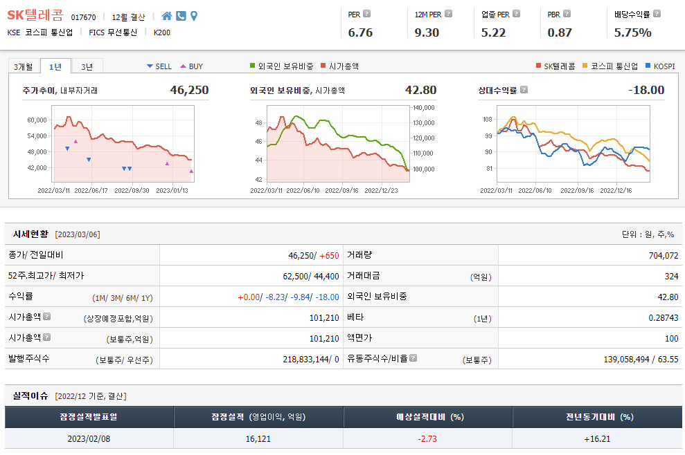 SK텔레콤 주가 분석